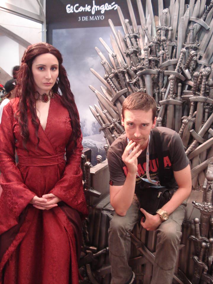 | Con Morgana Cosplay como Melisandre de "Juego de tronos" en el Trono de Hierro. |